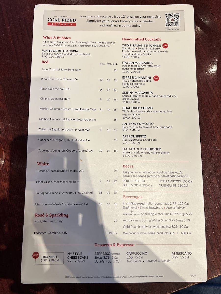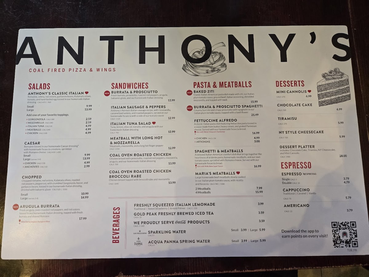 The atmosphere is warm and inviting, perfect for family gatherings or casual dining. With attentive and friendly staff, like Jasmine and Meadow, who enhance the experience with their personalized service, you’ll feel right at home. Dive into the culinary delights at Anthony's; it’s a meal you won’t forget!